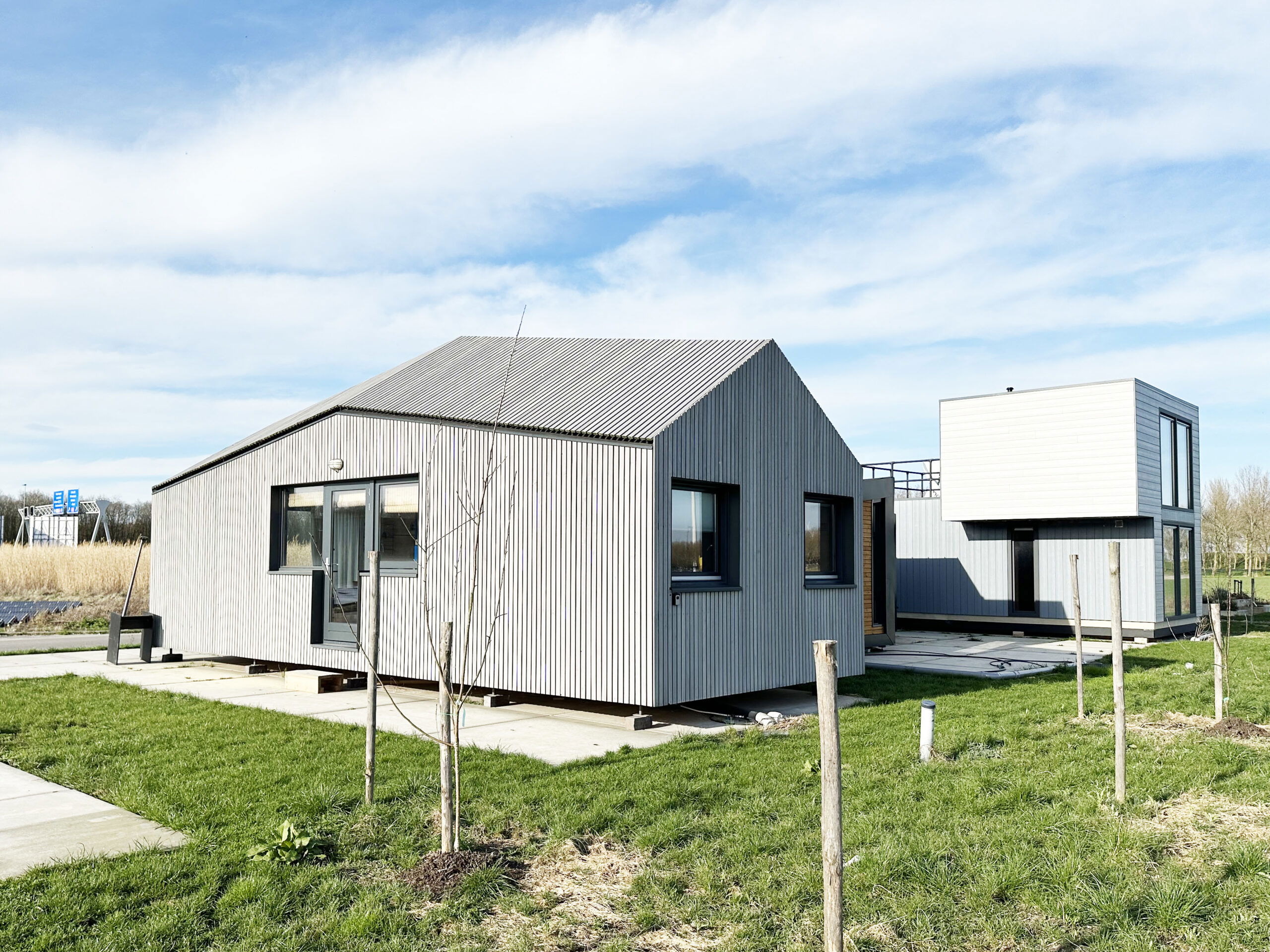 Ook de Dromedaris, de modelwoning met het karakteristieke geknikte dak, is nu extra voordelig te koop: voor € 120.000 inclusief BTW mag hij worden overgenomen. Geschikt voor tijdelijke bewoning, en met enige aanpassing ook voor permanent verblijf. Ook heel sfeervol als vakantiehuis, met het volledig houten interieur. De woning kan in zijn geheel worden vervoerd. De kosten voor verplaatsing zijn voor rekening van koper.