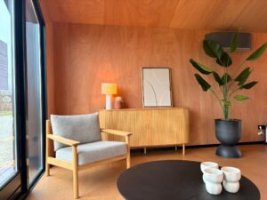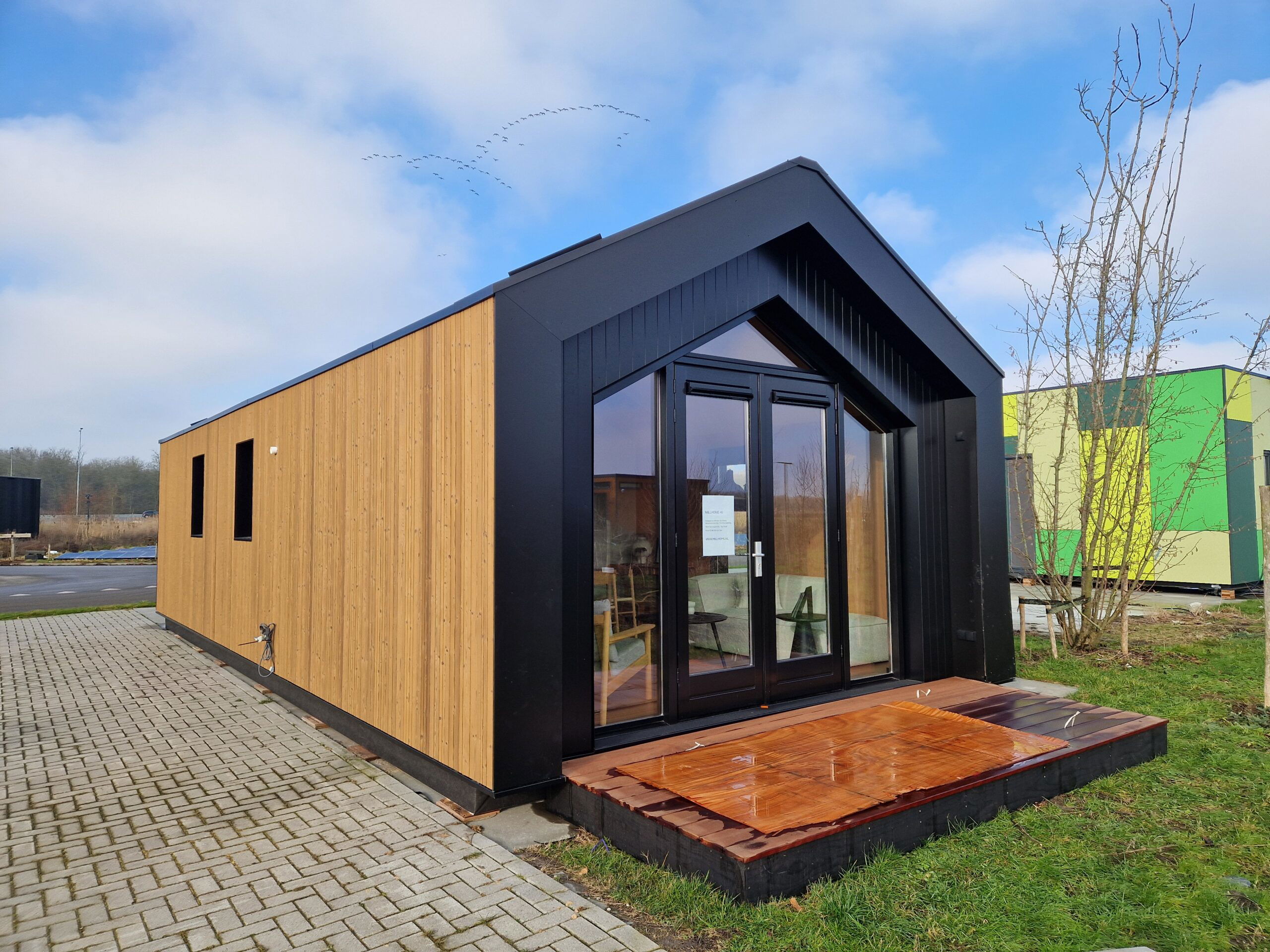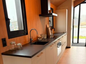 Laatste kans om de Millhome 40 te bezoeken! Omdat er zoveel belangstelling voor de Millhome woningen is, is dit nieuwe model voor de komende 3 maanden alsnog op Demopark neergezet. De ’40’ is een geheel gelijkvloers model met van binnen een hoge open kap, een praktische indeling en natuurlijk het gehele dak vol met zonnepanelen. Het huis heeft een apart toilet, en een lange keuken die in open verbinding met de woonkamer staat, maar toch apart is. De badkamer grenst aan de slaapkamer, heerlijk comfortabel. Kortom, de Millhome 40 is een fijne complete woning waar je zo in kunt stappen!